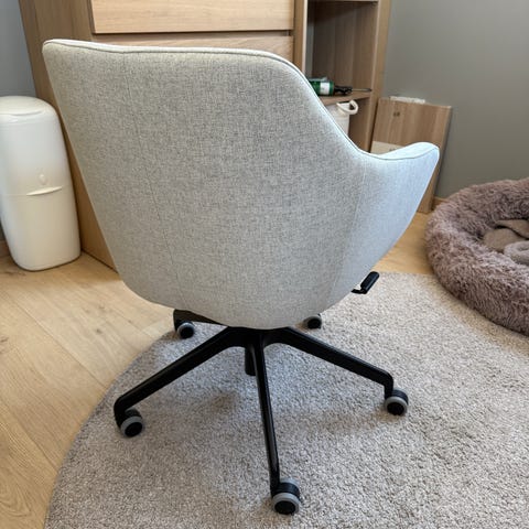 Denne ergonomiske kontorstolen har mange funksjoner for å holde deg komfortabel og fokusert, for eksempel en godt formet rygg med justerbar korsryggstøtte og mykt fullnarvet skinn som puster (fra ikea.no).