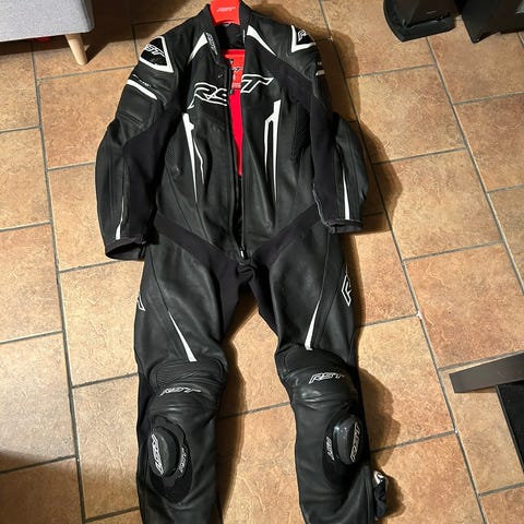 Alpinestars motorsykkel skinndress i svart og hvit. Dressen er laget i skinn og er merket med europeisk størrelse 54.