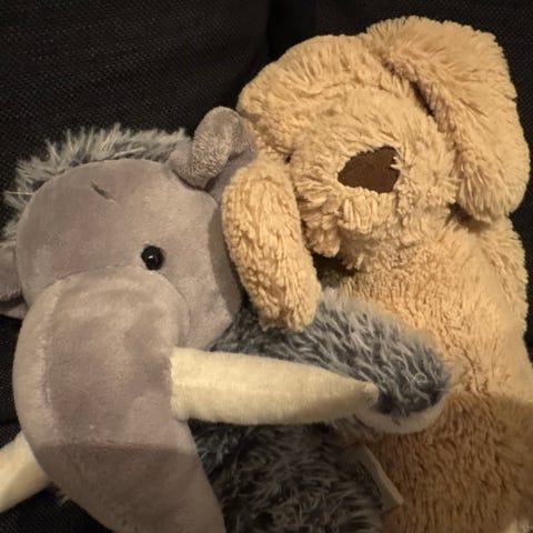 2 hånddukker/bamser elefant og teddybjørn