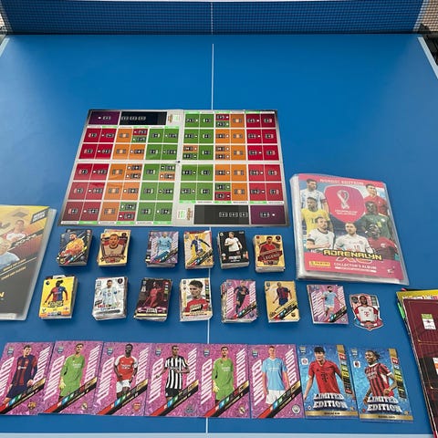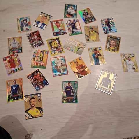 Panini Adrenalyn XL år 2023 fotballkort blandet samling. Kortene viser ulike spillere og lag, inkludert spesialkort som Limited Edition og Captain-kort. Egner seg for samlere av fotballkort og til bytting eller utfylling av samlinger. Antall og konkrete korttyper fremgår av bildene.