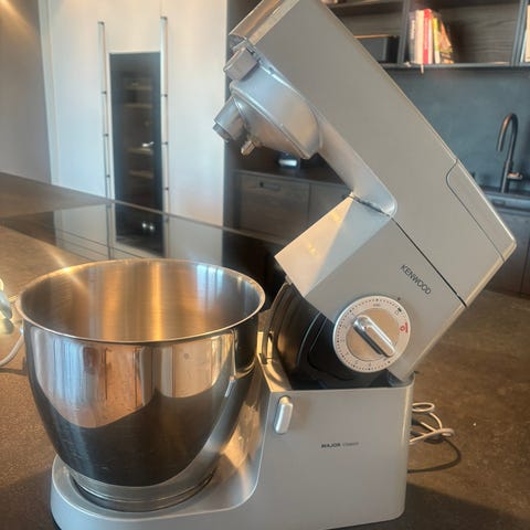 Kenwood major kjøkkenmaskin 900w. Maskinen leveres med stålbolle, visp, deigkrok til ulike typer røre og deig. I tillegg følger det med blenderkanne og kjøttkvern med utstyr til å male kjøtt. Kjøkkenmaskinen er egnet til daglig matlaging og baking, og kan brukes til blanding, elting, visping og kverning.