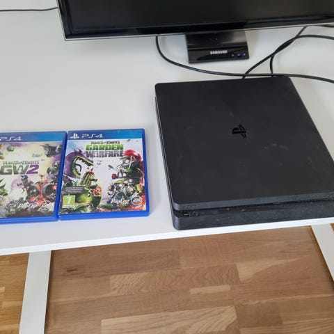 Sony Playstation 4 spillkonsoll svart, med 2 håndkontrollere