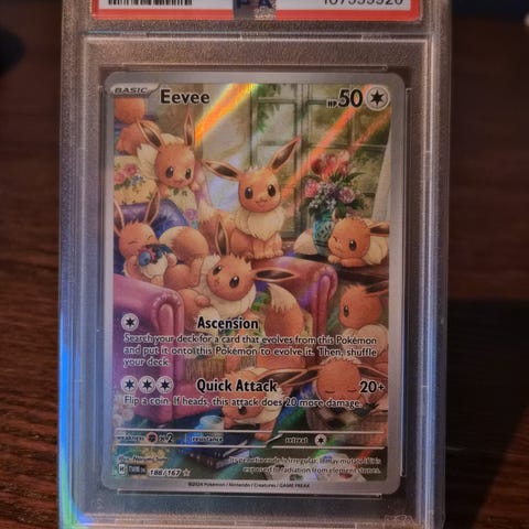Selger et nydelig Eevee GX SM242 pokemonkort som er gradert av PSA til 9 - Mint ☺️