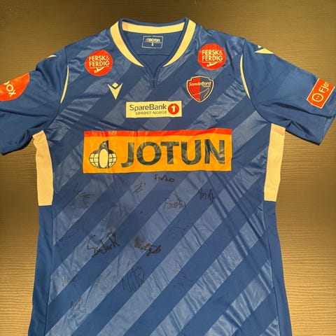 Sandefjord drakt str xxs. Det er Liam nummer syv trykket på bak siden. Kjøpt i Sandefjord klubb shop