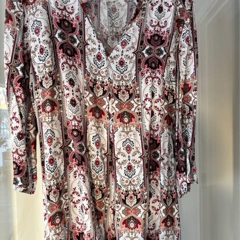 🤍TURKIS/HVIT MØNSTRET KJOLE, STR. 36