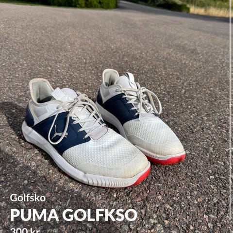 Puma Golf /golfsko i størrelse 39. Dette paret er brukt rundt 8 golfturer så ikke så mye. Selger disse siden jeg da har byttet sport😅 veldig gode sko da og jeg var kjempe fornøyd når jeg fikk disse! Koster originalt 1400kr men selger da for 800kr.