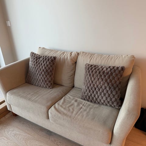 Sofa selges som den står god å sitte i eneste at den knirker når man setter seg