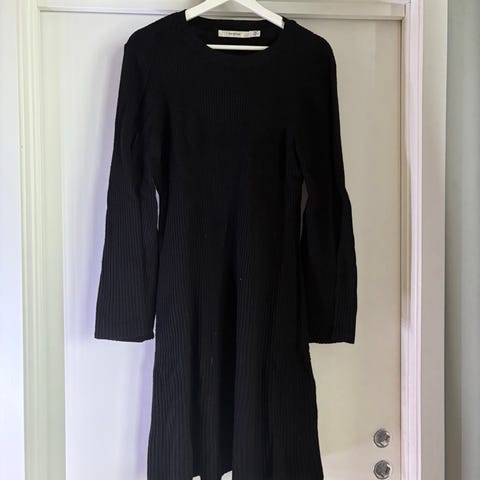 YAS hverdagskjole i svart farge for dame i størrelse M. Kjolen er laget hovedsakelig av viskoseblanding, med ribbestrikket struktur og dekorativ strikket detalj nederst på skjørtet. Modellen har lange ermer med ribbestrikkede mansjetter. Passer som en enkel hverdagskjole i en myk og behagelig strikket kvalitet.