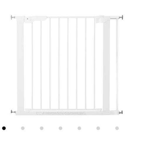 Svart barnegrind med forlenger. Spenngrind, som ikke trenger å skrus i veggen.