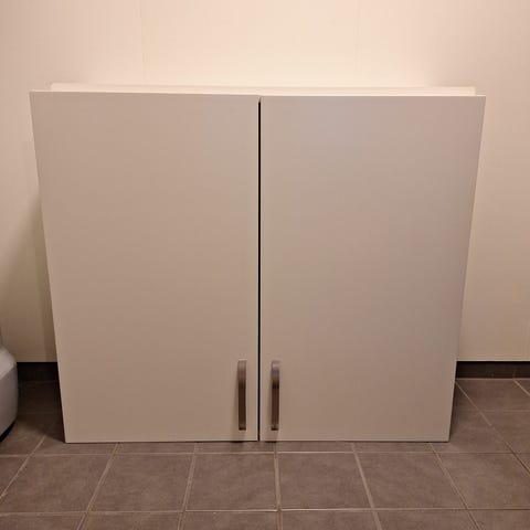 2 stk IKEA skap 80x80x40 med hvite dører, to hyller