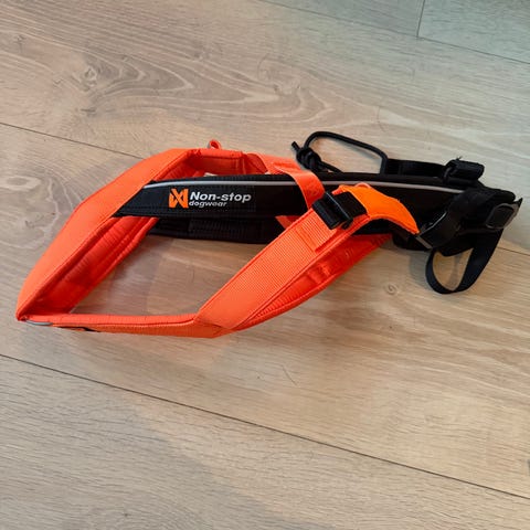 Non-stop Dogwear trekksele i svart. Selen er laget for bruk til trekking og aktiviteter med hund, og har justerbare stropper for tilpasning. Egnet til bruk med line eller strikk, for eksempel til tur og trening med hund.
