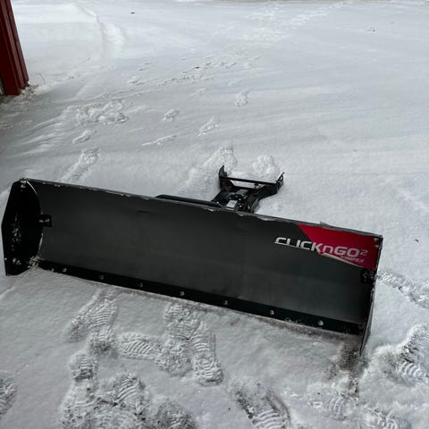 Hydraulisk plogblad i stål med perforert slitestål nederst. Konstruert for montering på kjøretøy eller maskin med passende feste og hydraulikk. Egnet for rydding av snø på gårdsplasser, veier og andre uteområder. CE-merket produkt fra Kellfri AB.