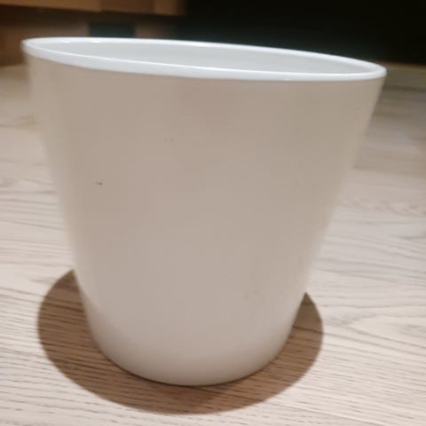 Selger pent brukt hvit blomsterpotte uten dreneringshull i bunnen for 80 kr.