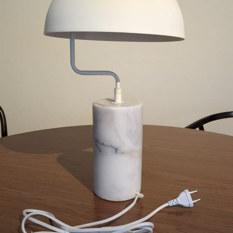 Bordlampen fra Oluce har en verdensberømt, unik look i munnblåst glass med geometriske former. Bordlampen har en sylindrisk lampefot med en kjegleform på toppen, en hemisfærisk lampeskjerm med et direkte lys og et diffust lys. Den har en universaldimmer på ledningen for justering av lysstyrken. Perfekt for å plassere i et dypere vindu, på sidebordet eller på nattbordet.