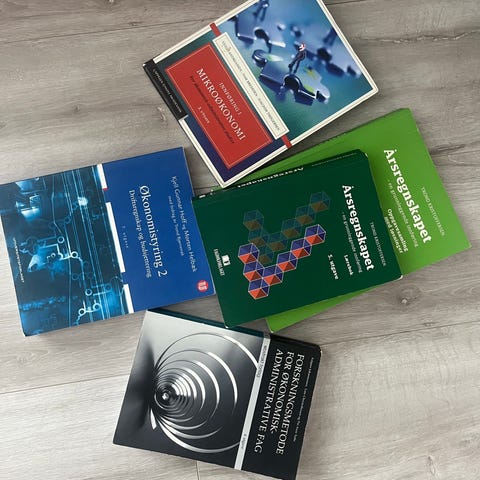Samling pensumbøker innen økonomi og administrasjon. Bøkene dekker emner som økonomistyring, årsregnskap, makroøkonomi og andre grunnleggende og videregående fag innen økonomi og administrasjon. Egnet som faglitteratur for studenter på høyskole- og universitetsnivå innen økonomi og administrasjon.