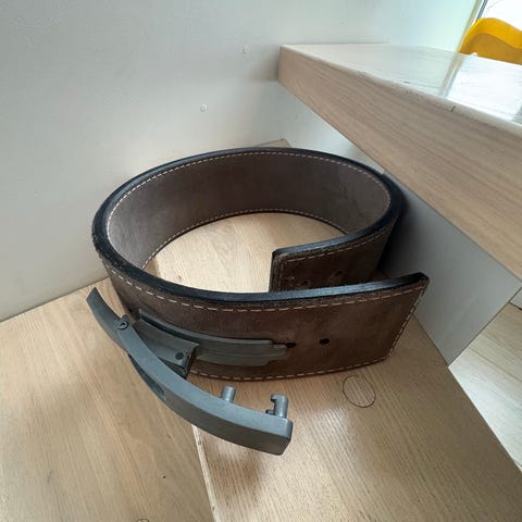 Gasp treningsbelte i svart med oransje søm. Bredt og stivt belte som gir støtte rundt midjen ved styrketrening og tunge løft. Justerbar låsemekanisme i metall med flere hull for tilpasning. Passer til bruk på treningssenter eller ved styrketrening hjemme.