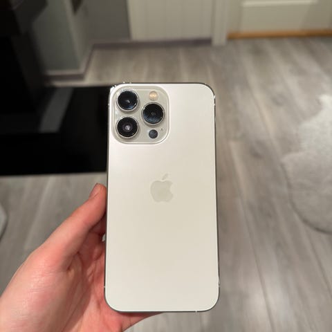 Selger en iPhone 13 Pro i fargen Silver med 128 GB lagring. Telefonen er i helt strøken stand og fremstår som ny – ingen riper, merker eller synlig slitasje.