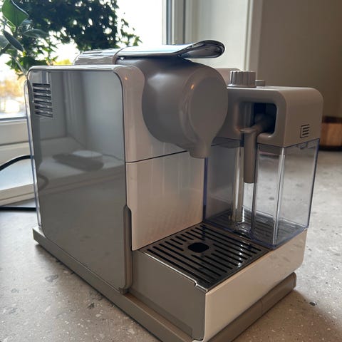 De'Longhi kapsel kaffemaskin med melkebeholder sølv/hvit