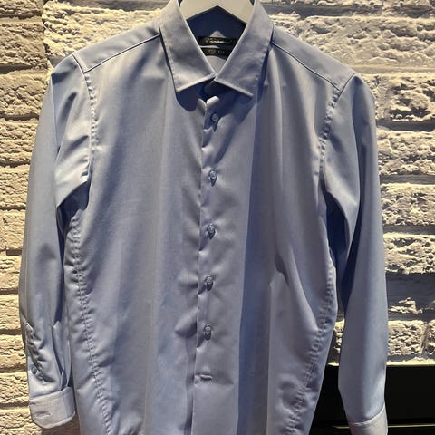 H&M skjorte for gutt i størrelse 140. Skjorten er i blå bomull, med klassisk krage, lange ermer og knappelukking foran. Egnet til bruk i hverdagen eller til mer formelle anledninger. Laget i bomull for myk og behagelig passform for barn.