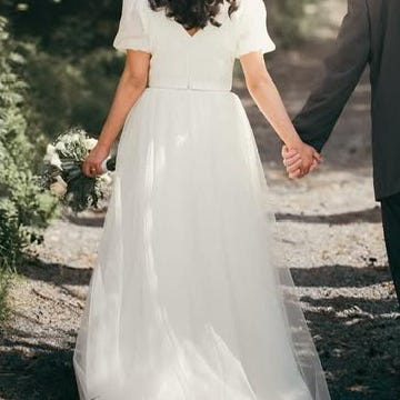 - Langt slør (ubrukt) - 2x3 m med blonder rundt hele kanten, uten kam