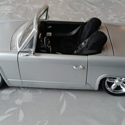 Jentene mine selger Bratz lekebil i plast med gjennomsiktig rosa lokk og gullfarget karosseri. Bilen har sitteplasser inni med rosa og svarte detaljer. Det følger med flere små tilbehørsdeler i gullfarge og en rund plate i oransje og blått som kan brukes i bilen. Lekebilen er egnet til bruk sammen med Bratz-dukker i standard størrelse og kan brukes til rollelek og oppbevaring av dukker og smådeler.