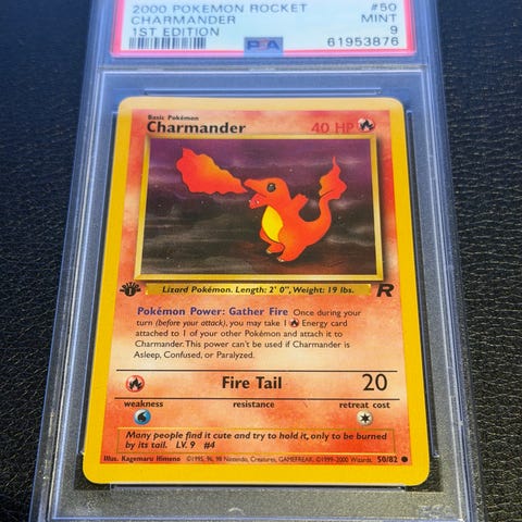 Selger en strøken base set 1999 shadowless charizard psa 9 - mint! Et nydelig kort som i det siste har skutt i været verdimessig! Vil være et nydelig kort i enhver samling! Bare å spørre om flere bilder osv.