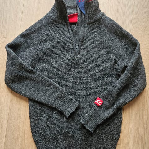Ulvang ullgenser til barn i størrelse 128. Genseren er mørk grå og laget av 100 % ull. Unisex-modell med lang erm og høy hals med glidelås. Egner seg godt som på kjølige dager. Vaskes etter anvisning på merkelapp for ullplagg.