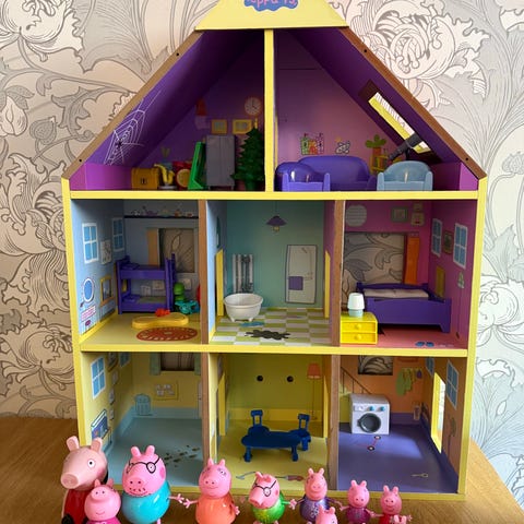 Selger et koselig Peppa Gris hus med mye tilbehør. Det er godt brukt, men fortsatt i fin stand og med mye lek igjen 😊