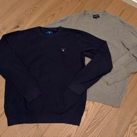 Tre gensere fra Gant (merinoull - M), Jean Paul (bomull - L) og Boss (bomull - M). Pent brukt