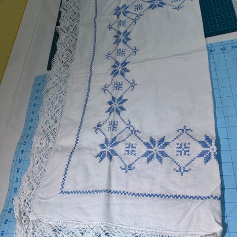 #vintage #pyntehåndkle #kjøkkenhåndkle #blåhvit #landlig #hyttekjøkken #broderi #retro #kjøkkentekstil #gammelduk #interiør #blåttmotiv #samler