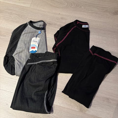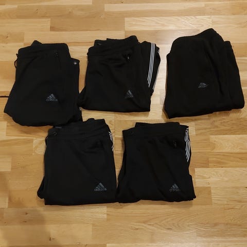 Treningssett i svart og grå farge, fra Hummel, Umbro og Adidas. Settene fra Hummel og Umbro er foret. Perfekt til kaldere dager, ikke det fra Adidas.