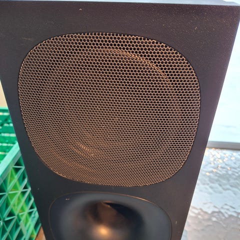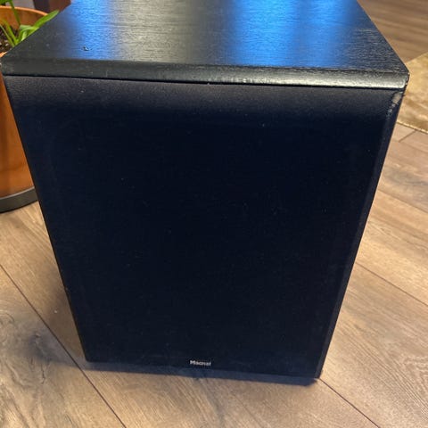 Høyttaler i sort kabinett. Passiv modell med tilkobling på baksiden via terminaler for høyttalerkabel. Egnet som del av hjemmekino- eller stereooppsett der man ønsker en ekstra høyttaler i systemet. Elementet spiller bra. Kommer ikke på merket og spesifikasjonene, men kan sjekke om interesse.