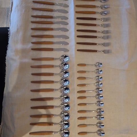 Hellefjord bestikksett trehåndtak i etui. 100kr pr del