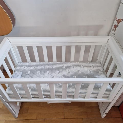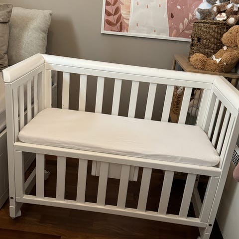 ! Beina er kappa en cm eller to for å få plass mellom seng og vegg. Ny bredde 44cm, se bilde