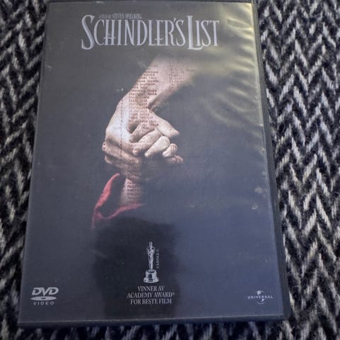 Schindler’s List DVD Anniversary Edition. Film i DVD-format med aldersgrense 15 år. Utgaven inneholder bonusmateriale som blant annet dokumentarstoff og intervjuer (oppgitt på baksiden av coveret). Språk- og tekstalternativer følger standard oppsett for denne utgaven, se omslag for detaljer om lydspor, undertekster og spilletid.