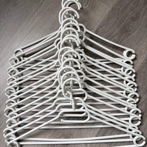 Jeg selger 58 stk kleshengere i matt sort metall.