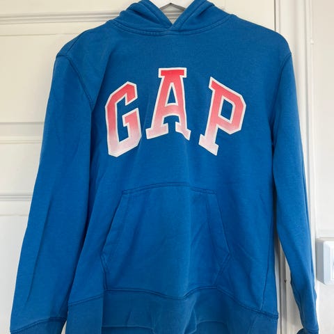 GAP hettegenser for herre i størrelse M. Genseren er gul og laget i bomull. Klassisk hettegenser med justerbar snøring i hetten, kengurulomme foran og ribbekanter ved ermer og nederkant. Stor GAP-logo på brystet. Passer til hverdagsbruk og fritid.
