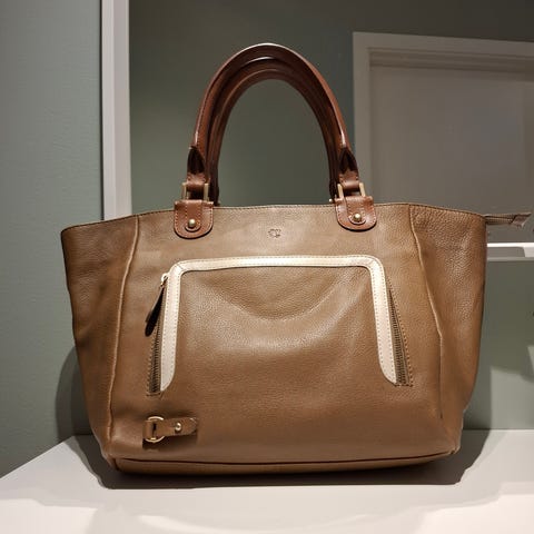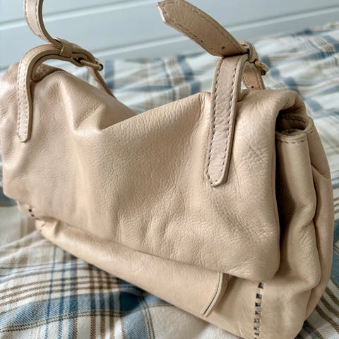 Vesken er todelt farge i lys beige og en litt mørkere beige.
