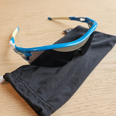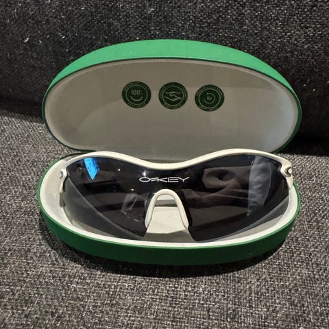 Originale Oakley Radar sportssolbriller, produsert i USA. Klassisk performance-modell brukt til sykling, løping og trening.