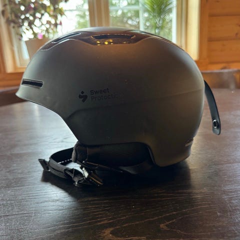 Sweet Protection skihjelm i grå farge. Strl M-L. Hjelmen har justerbar passform med strammehjul i nakken og hakestropp med klips. Ventilasjonsåpninger på toppen og bak sørger for lufting. Det følger med bøyle til hjelmen.