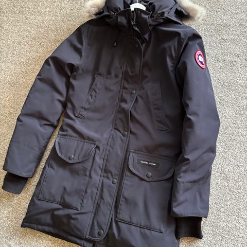 Canada Goose vinterjakke med dunfyll for dame i størrelse S. Passer også M. Jakken er svart og har lengre passform som dekker ned over hofter. Den har hette, frontlukking med glidelås og knappestolpe, samt flere utvendige lommer med klaff. Ermene har ribbestrikkede mansjetter på innsiden for bedre isolasjon. Yttermaterialet er slitesterkt, mens dunfyllet gir god varme til bruk i kaldt vær. Stramming i livet gir fin og feminin passform. En jakke som passer til alt!