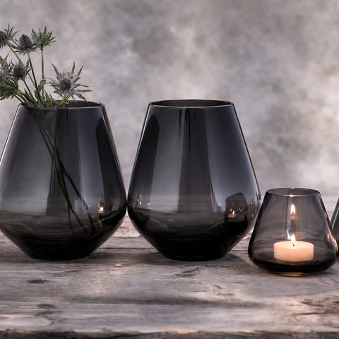 Lykten har en rund, konisk form med bred bunn og smalere åpning øverst. Den er egnet til kubbelys eller telys og kan brukes både som lykt og som enkel borddekorasjon.