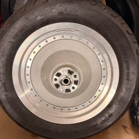 Selger Tesla Model Y Uberturnine sommerfelger med dekk. Den ene siden var kantjort og dårlig reparert (dårlig lakk) og det andre bakdekket har kantjort.