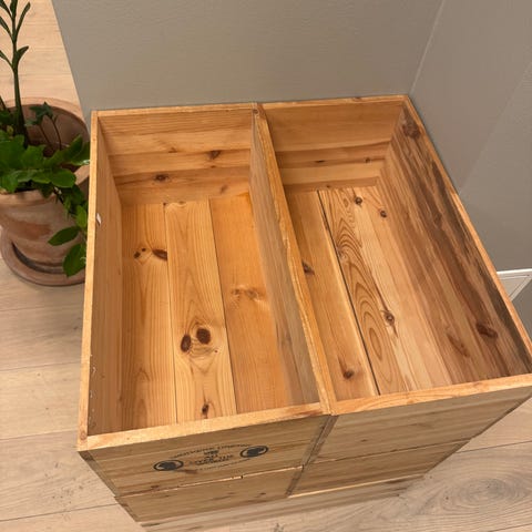 Sjørøverkiste som har stått på barnerom. Den lille sjørøveren er blitt stor og denne er blitt ett overflødig møbel. Som alle kule skattelister har denne også "hemmelig" rom. Det er dobbelbunn i kista.