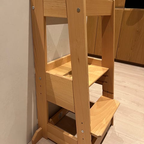 kjøkkenhjelper i tre i naturfarge. Usikker på merke da denne er kjøpt brukt. Pent brukt.