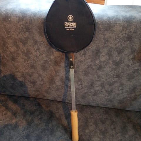 Tradisjonell modell i støpegods med langt stålskaft og håndtak av tre. Leveres med eget etui.