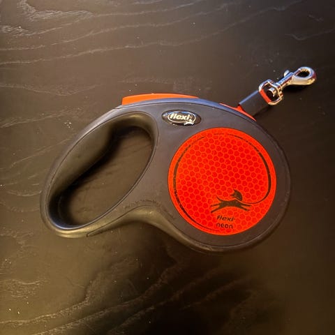 Flexi rullekobbel til hund i svart og grå farge. Kobbelet har ergonomisk håndtak og karabinkrok for feste i halsbånd eller sele. Passer til turer og hverdagsbruk med hund.