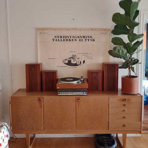 IKEA skjenk selges. Kontaktfilm med «trestruktur» på toppen. Noen merker her og der, men masse bruk igjen. Metallbein under.