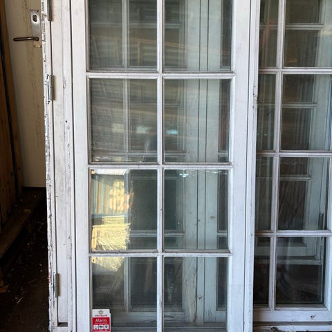 Dobbel koblede vinduer med gjennomgående sprosser tre hvit