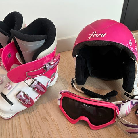 Godt brukt skisko og hjelm, men mye bruk igjen. Alt er vasket før salg. Selges samlet.